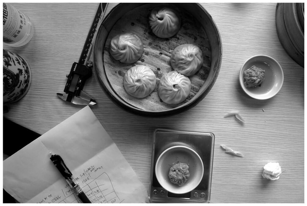 The Shanghai Soup Dumpling Index is a scientific investigation into the quality of soup dumplings in Shanghai. It applies a quantitative framework to the existing qualitative descriptors of the Shanghai soup dumpling (hereafter referred to as “xiao long bao”): thin skin, plentiful soup, abundant filling, fresh meat (皮博 汁多 馅大 肉鲜). A total of 52 restaurants were sampled for this index between December 2013 and October 2014 in Shanghai, People’s Republic of China.